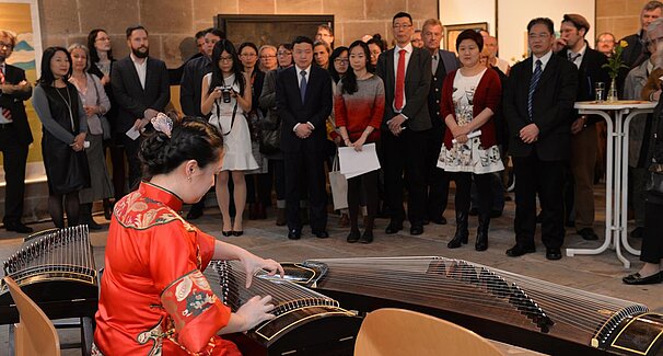 Zur sehr gut besuchten Ausstellungseröffnung am Abend des 18. April 2016, auf der die anwesenden Künstler ausgezeichnet wurden, sprachen Dr. Norbert Schürgers, Leiter des Amts für Internationale Beziehungen der Stadt Nürnberg, und Xiaoming Ma, Leiter des Amtes für Kulturaustausch der Nationalen Gesellschaft für Völkerverständigung der Volksrepublik China. Umrahmt wurde der Abend von den Klängen der traditionellen chinesischen Wölbbrettzither Guzheng.