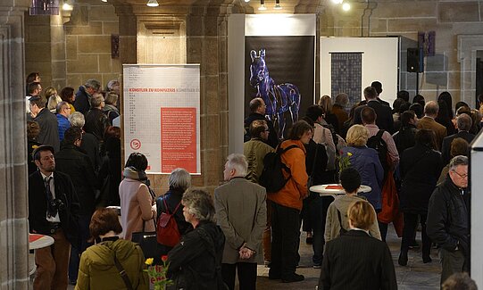 Die sechs Künstler aus der Metropolregion Nürnberg gingen als Gewinner eines vom Konfuzius-Institut gemeinsam mit dem Amt für Internationale Beziehungen der Stadt Nürnberg ausgeschriebenen Künstlerwettbewerbs zum Thema "Konfuzius" hervor. Über 20 Künstler folgten dem Ruf der Ausschreibung und bewarben sich mit ihren sehr unterschiedlichen und kreativen Ideen für den Wettbewerb. Der sechsköpfigen Jury* fiel es nicht leicht, bei den vielen qualitativ hochwertigen Bewerbungen eine Auswahl zu treffen, am Ende gingen jedoch sechs Gewinner des Wettbewerbs hervor, die ihr Werke in der Ausstellung "Künstler zu Konfuzius" präsentieren konnten: