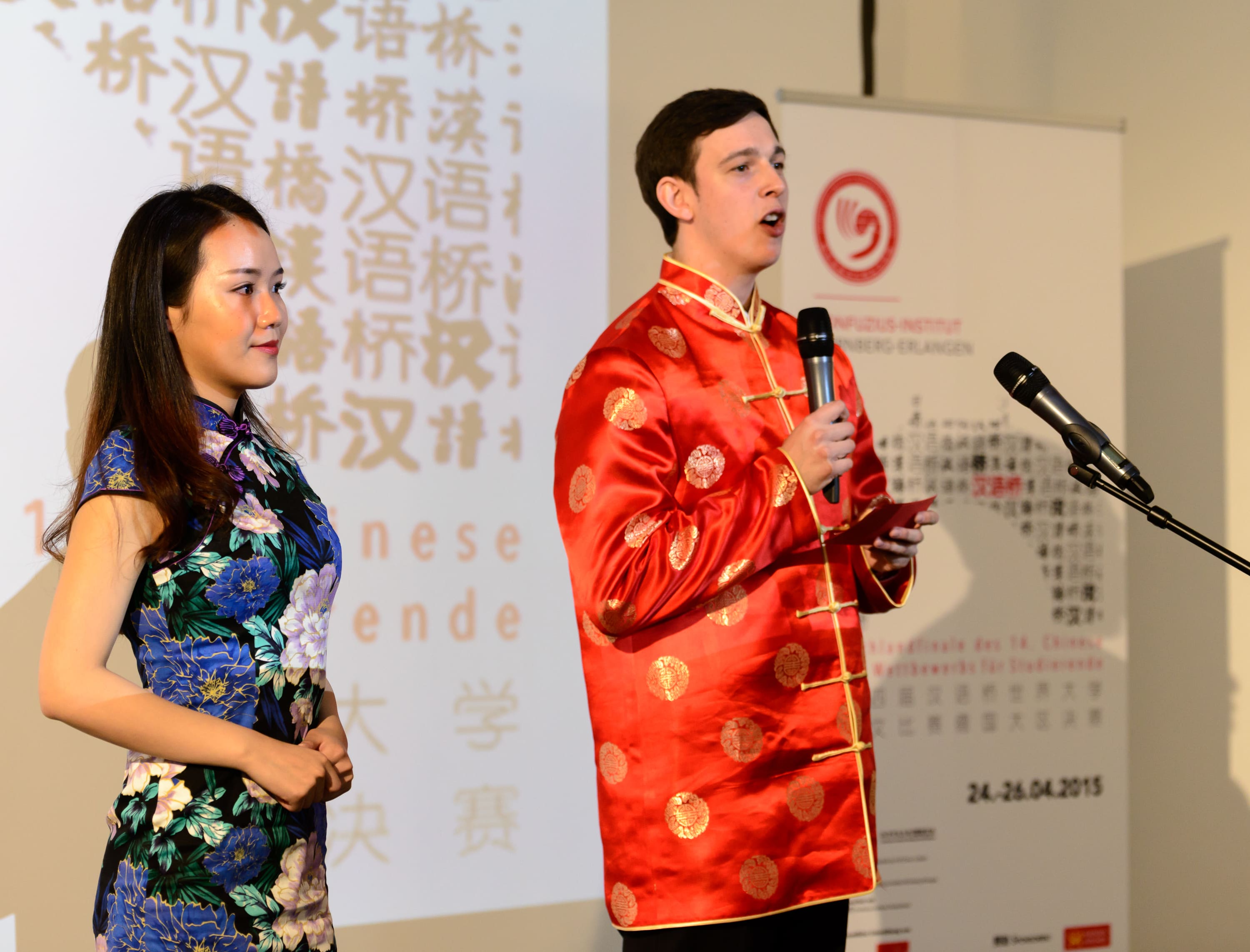 Faszinierende Einblicke in die chinesische Sprach- und Kulturwelt bot das Deutschlandfinale des „Chinese Bridge“-Wettbewerbs für Studierende am 25.04.2015 im Fabersaal des Bildungszentrums Nürnberg. 15 Teilnehmer aus ganz Deutschland konnten dort im freundschaftlichen Wettstreit ihre Chinesisch-Kenntnisse und ihr künstlerisches Talent präsentieren. Die drei Gewinner des deutschen Wettbewerbs dürfen nun am Finale des Wettbewerbs in China als Kandidaten teilnehmen.