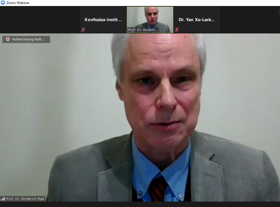 Auf Einladung des Konfuzius-Instituts Nürnberg-Erlangen hielt Prof. Dr. Roderich Ptak, seit 1994 Lehrstuhlinhaber der Sinologie an der Ludwig-Maximilians-Universität München, am 14. Oktober 2020 einen Online-Vortrag zum Thema "Die Mühsal mit den Wahrnehmungen: Gedanken zu sino-europäischen Kontakten in alter Zeit".