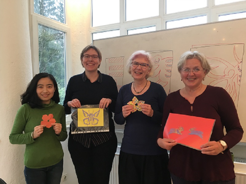 Am 17. März 2017 fand der erste Kulturworkshop zum chinesischen Scherenschnitt am Konfuzius-Institut Nürnberg-Erlangen statt. Der erste Punkt des Workshops waren Scherenschnitte, die ihre komplexe Form aufgrund von Falttechniken erhalten. Komplizierte Schriftzeichen und elaborierte Tiere konnten so mit kleinem Aufwand hervorgezaubert werden. Um der Schere eine Pause zu gönnen wurde aus quadratischem Papier das Tierkreiszeichen dieses Jahres gefaltet – ein Hahn. Es folgte die Paradedisziplin des Scherenschnitts: aus einem Blatt Papier Situationen zu erschaffen. Jeder wählte ein anderes Sujet und am Ende konnte man Bambus mit Enten, Tiger, Ziegen und Drachen bestaunen. Zum Schluss gab es noch eine blumige Überraschung. Durch einfache Schritte und Faltungen konnten Blumen mit fünf Blütenblättern entstehen, die alle Teilnehmer begeisterten. Ein rundum gelungener Kurs, bei dem alle Teilnehmer einen ersten Eindruck von der vielseitigen Kunst des Scherenschnitts gewinnen konnten.